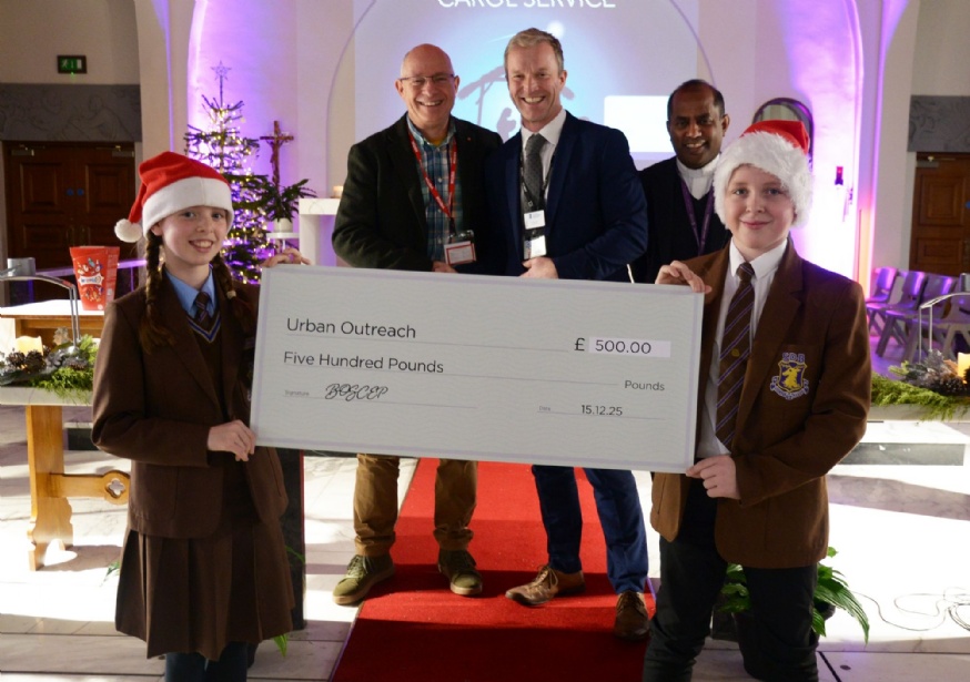 A special moment in the service was the presentation of a fundraising cheque to Dave Bagley from the charity Urban Outreach. The donation, raised by schools across BOSCEP, will support Urban Outreach in its work with people experiencing homelessness and hardship, helping to put faith into action this Christmas and beyond.